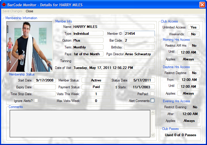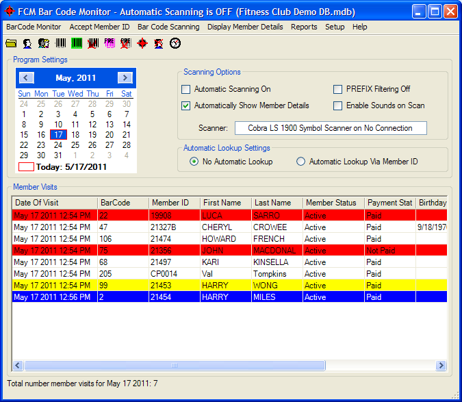 The BarCode Monitor program will check in your members when they visit your club! A quick scan of their membership card will check them in to your club and alert you to any problems concerning their membership while they are still at the front door!