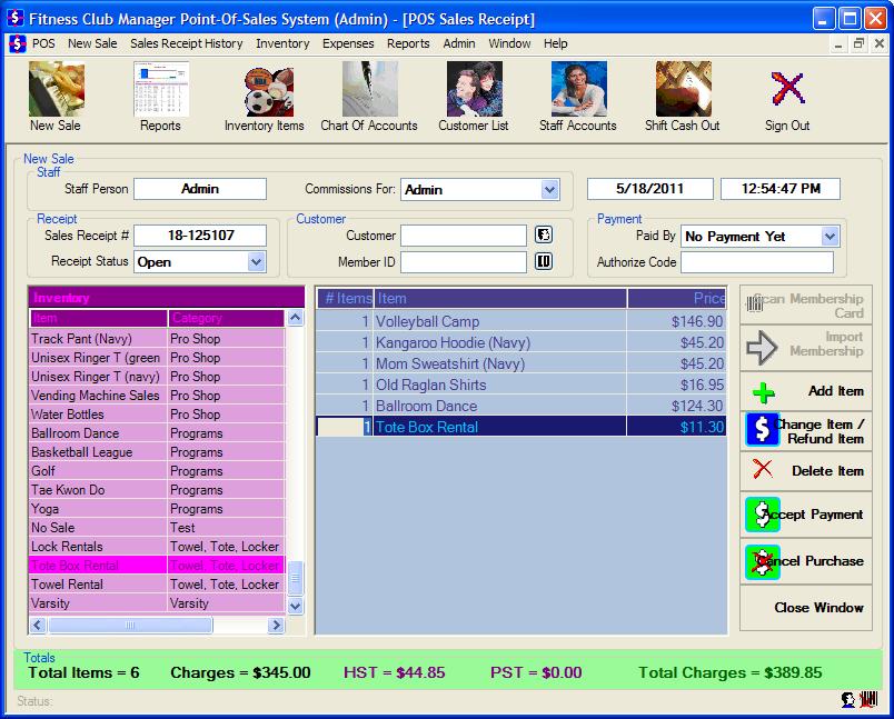 The FCM Point-Of-Sale (or POS) System integrates your Point-Of-Sales transactions with your Fitness Club Manager membership database. A complete POS system, the FCM Point-Of-Sale System will give you control of your inventory and provide you with an easy Point-Of-Sale application for selling items at your fitness club. FCM Point-Of-Sale works with most cash drawers and receipt printers.